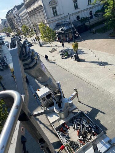 Light Move Festiwal 20121 –kolejna edycja za nami, była to już XI edycja tej ogromnej, kultowej imprezy, której przewodnim motywem od zawsze jest światło!!! Jesteśmy związani z tym festiwalem od pierwszej edycji, tylko w ubiegłym roku nie mieliśmy przyjemności być cząstką tej wielkiej imprezy – nasz udział wykluczyła pandemia Covid 19 i ogólnopolskie obostrzenia związane za zapobieganiem szerzenia się pandemii oraz zakazem zgromadzeń! Rok 2021 również był zagadką – wszystko jednak poszło po naszej myśli – i udało się!!!! Mieliśmy kolejny raz zaszczyt współpracy z Fundacją Lux Pro Monumentis – głównego organizatora oraz pomysłodawcy Light Move Festiwal oraz Signify S.A. Polska. Hasłem przewodnim tegorocznej edycji festiwalu były – „Połączenia –Connect”, – który to temat w zamyśle ma nawiązywać do człowieka, jego miejsca w świecie jego relacjach społecznych, duchowych, artystycznych oraz więzach łączących człowieka z naturą oraz drugą osobą. Jak co roku organizatorzy zadbali o to by zwiedzający mogli spotkać się ze światłem w różnych jego odsłonach i postaciach poprzez mappingi i projekcje 3D, interaktywne instalacje świetlne, pokazy, animacje czy muzykę?!! To kolorowy, bajkowy świat w centrum Łodzi tętniący barwami, muzyką i ekspresją!!! Ogromny obszar tegorocznego festiwalu zgromadził rekordowe ilości zwiedzających go ludzi, którzy spragnieni tego rodzaju wydarzeń wskutek ograniczeń pandemicznych „chłonęli” i napawali się niesamowitą atmosferą tej imprezy! Naszą przygodę z tegoroczną edycją zaczęliśmy od 14.09.2021. Staraliśmy się by prowadzenie prac związanych z montażem opraw wchodzących w skład iluminacji na kamienicach był jak najmniej uciążliwy dla prowadzonych w obrębie ulicy Piotrkowskiej restauracji, pub-ów oraz Innych bussines–ów. Mamy nadzieję ze to się udało gdyż wiedzieliśmy, że wszyscy tam odczuli negatywne skutki tego, co przyniosła pandemia. Jesteśmy bardzo zadowoleni i szczęśliwi, że wraca normalność, że wreszcie mogliśmy robić to najbardziej lubimy i na czym się znamy – było pięknie, naprawdę!!!